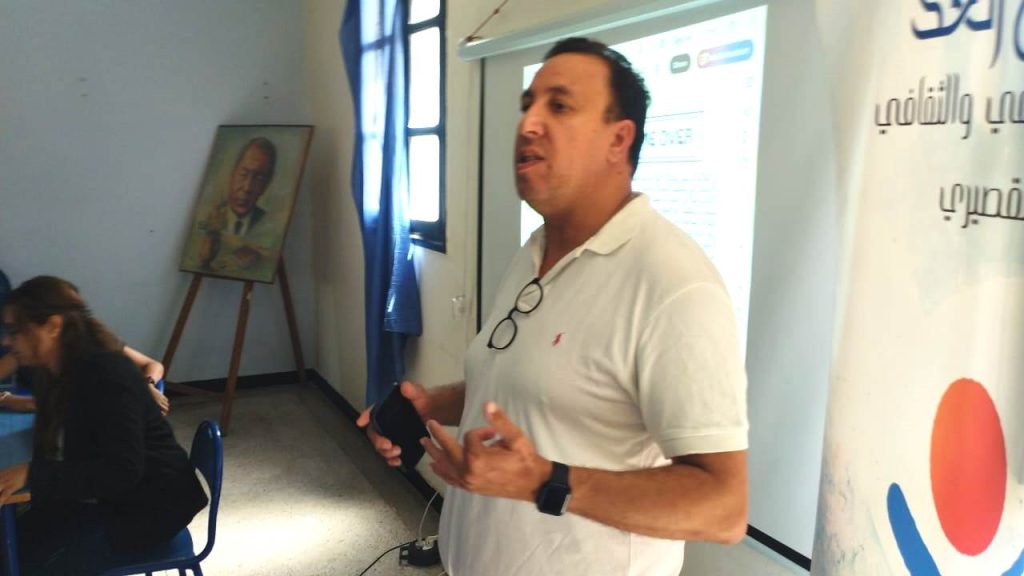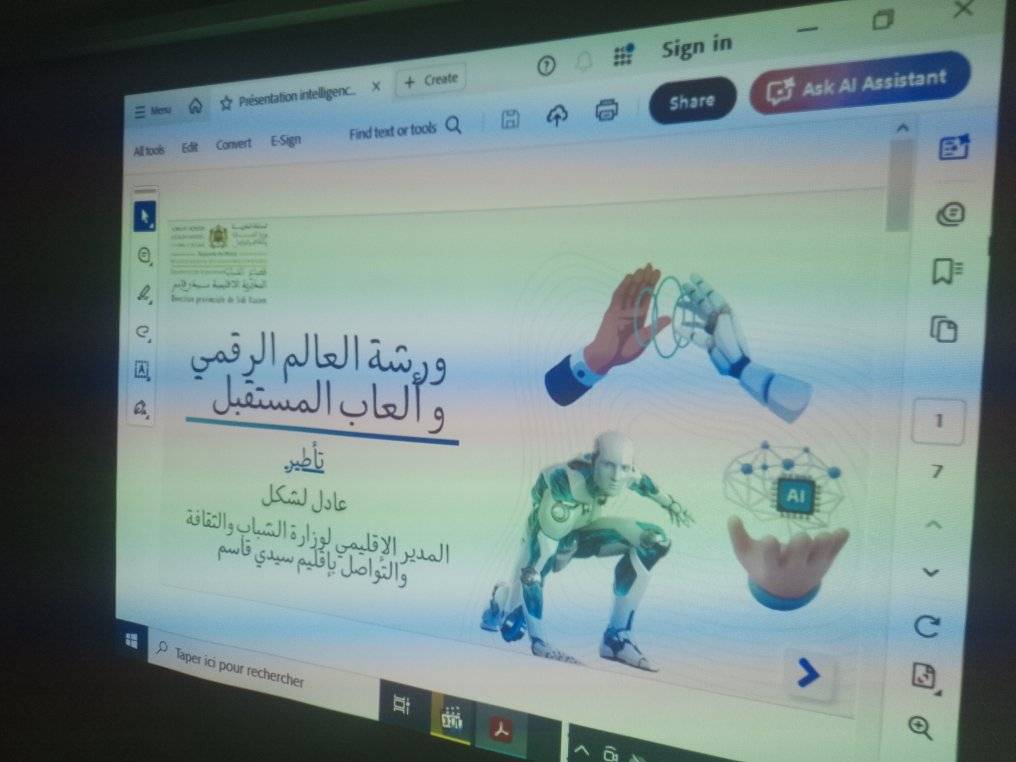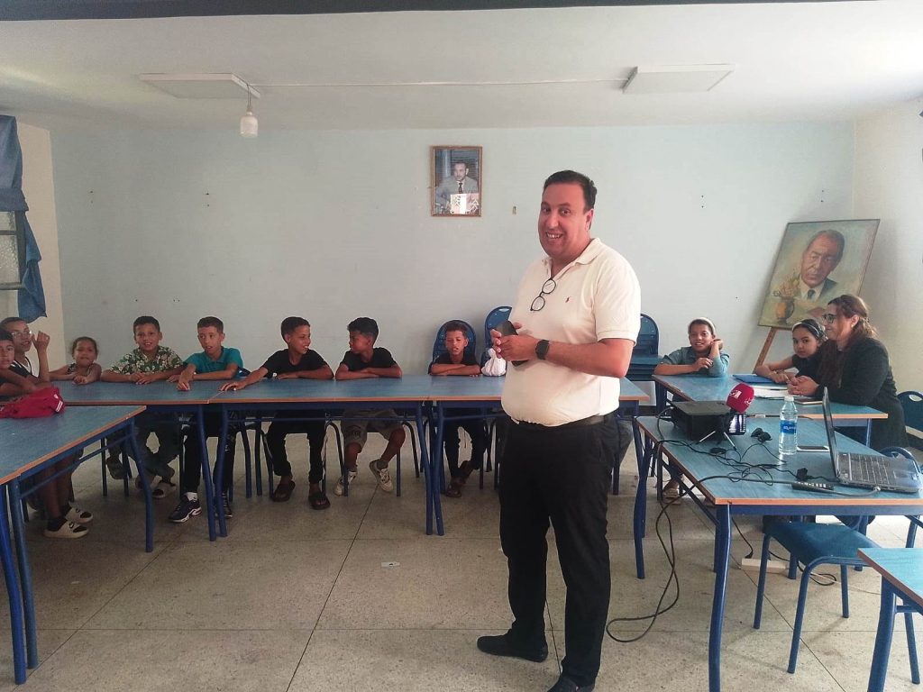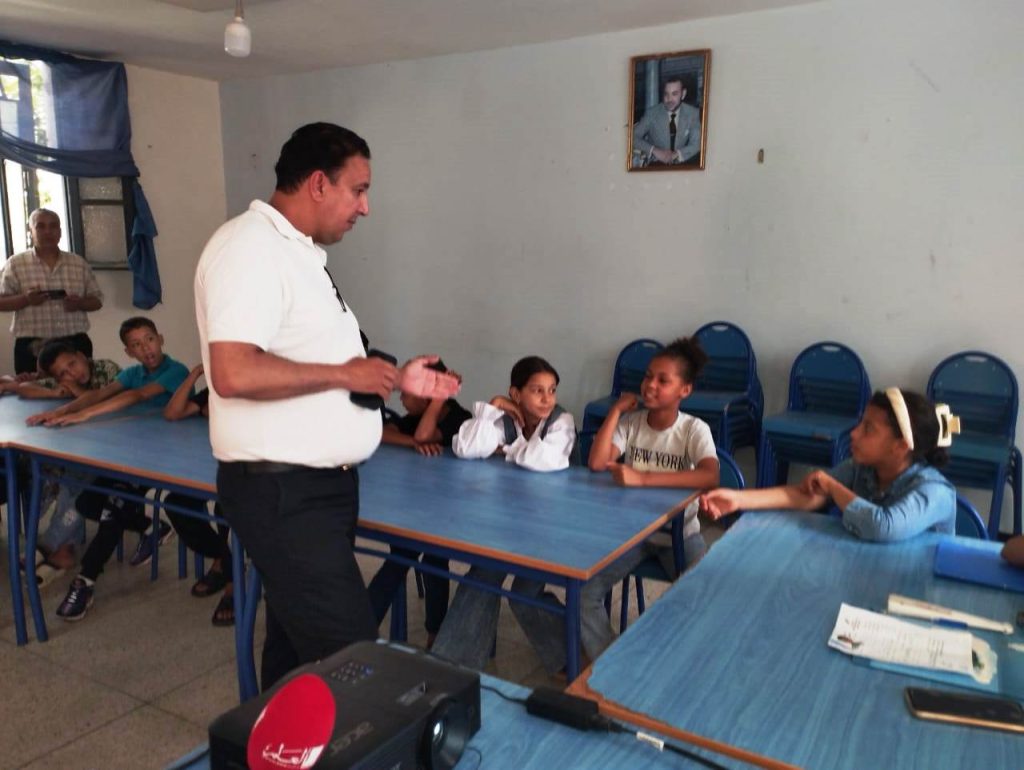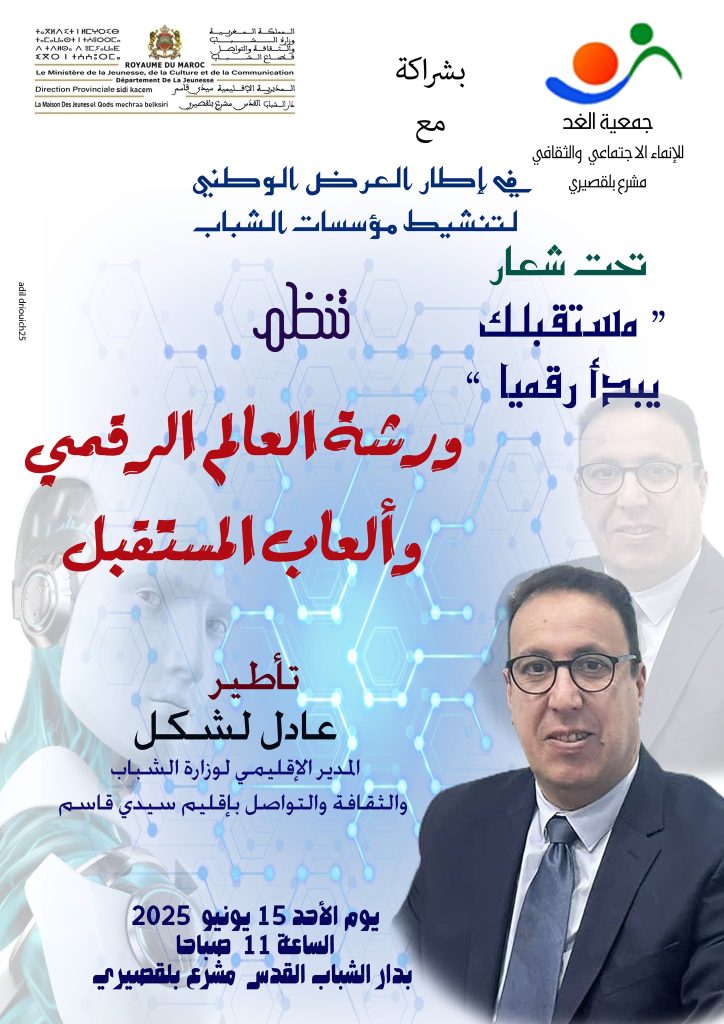 صور توثق لحظة تأطير السيد عادل لشكل، المدير الإقليمي لوزارة الشباب والثقافة والتواصل بإقليم سيدي قاسم، لورشة “العالم الرقمي وألعاب المستقبل ” المنظمة تحت شعار: “مستقبلك يبدأ رقمياً”، لفائدة أطفال جمعية الغد للإنماء الاجتماعي والثقافي، وذلك صباح يوم الأحد 15 يونيو 2025 بدار الشباب القدس.